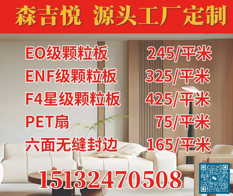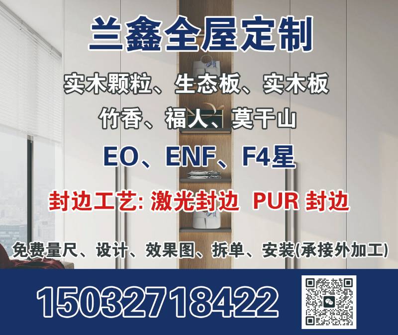 主营:实木颗粒、生态板、实木板 竹香、福人、莫干山EO、ENF、F4星 封边工艺: 激光封边 PUR封边,免费量尺、设计、效果图、拆单、安装(承接外加工)