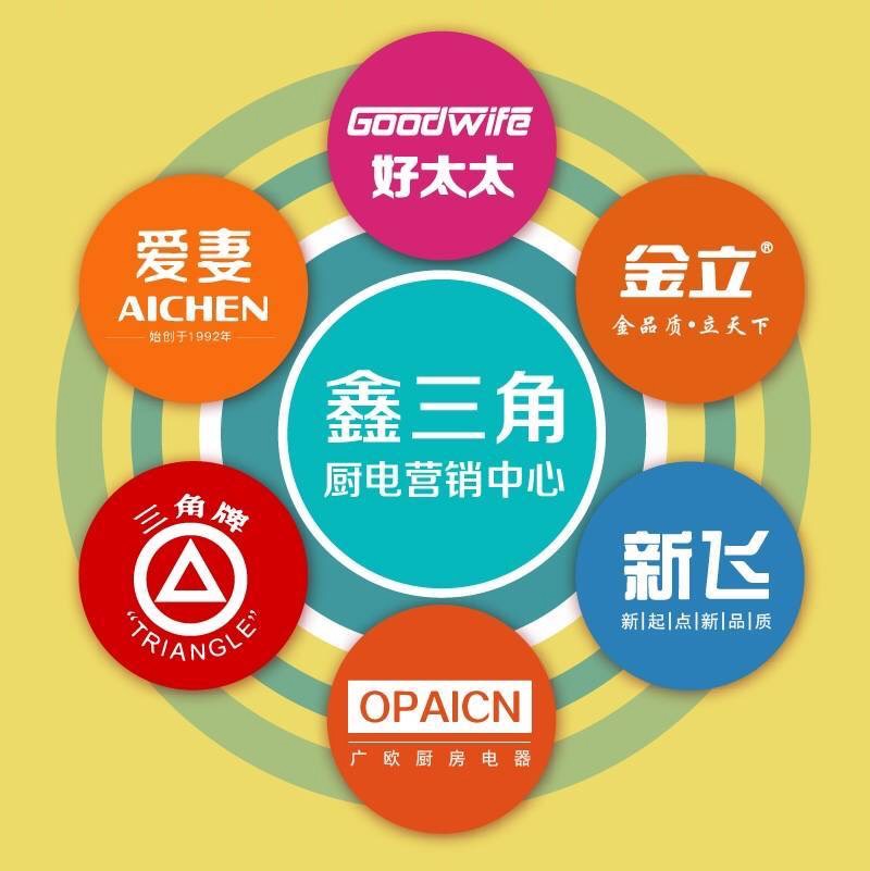 鑫三角本着成就优秀,追求卓越的企业精神,不断超越,不断壮大 ,到目前为止公司拥有亿电,Goodwife好太太 !爱妻 !金立 !三角 !新飞 !OPAICN 箭牌厨电,金牌厨电 臻品好太太九大品牌;