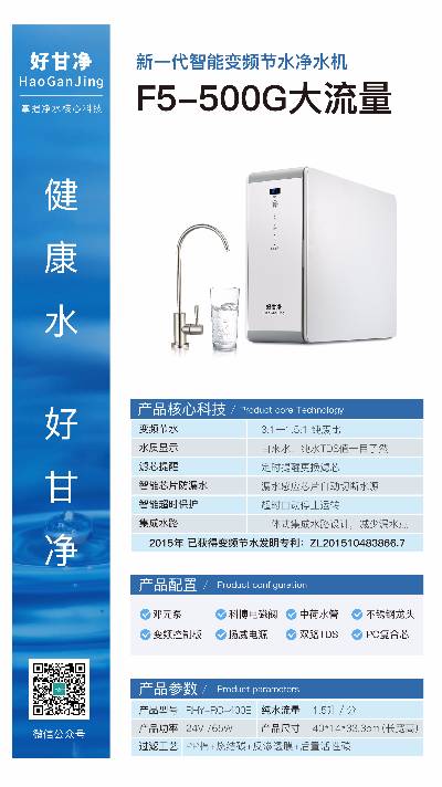 2020新一代 好甘净 智能变频节水净水机F5-500G大流量