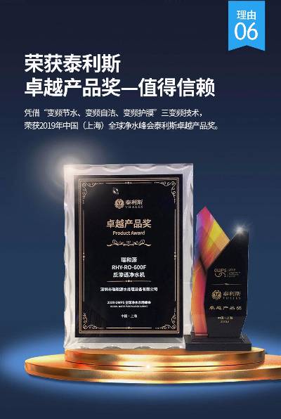 瑞和源品牌凭借良好的品质、技术、售后服务成为世界500强央企、行业知名企业直饮水供应商,荣获2019年中国(上海)全球净水峰会泰利斯卓越产品奖