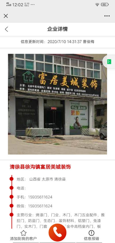 1.一个门店照传递的可销售价值是一个电话号一张名片一个名称无非替代的。就像是你自己站着客户门口一样,你可以清楚的了解到客户的主营产品、经营范围、服务的用户群体。而这些是其他所不具备的,朋友圈可以作假但是门店做不得假