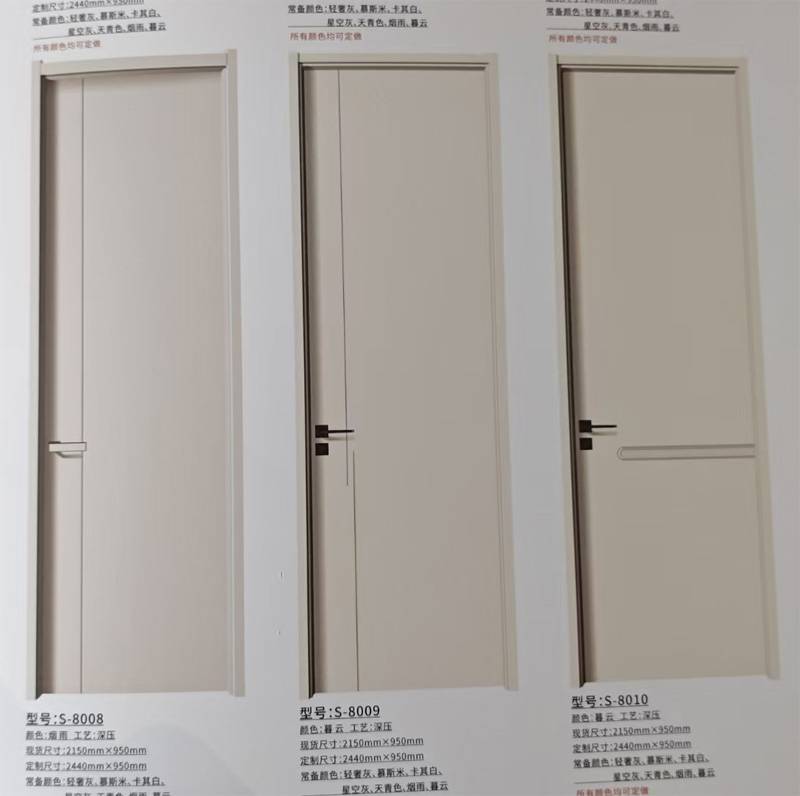 CPL木门238/套,EB漆感木门8厘面板268/套,PET木门298/套带锁